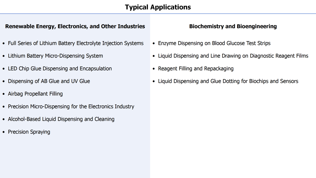 Guangdong JianFeng Automation Co., Ltd. is a technology company dedicated to the research, design, and manufacture of precision fluid control systems. Jianfeng produces a range of precision fluid control systems including micro pumps, integrated liquid injection pumps, constant flow pumps, pharmaceutical filling pumps, high-efficiency linear pumps, and precision nozzles, capable of precise metering from milligrams to kilograms with an accuracy of up to 0.1%. These systems are widely applied in high-tech industries such as renewable energy lithium batteries, biochips, medical devices, pharmaceuticals, semiconductors, and electronics. They provide reliable fluid solutions for highly challenging applications.